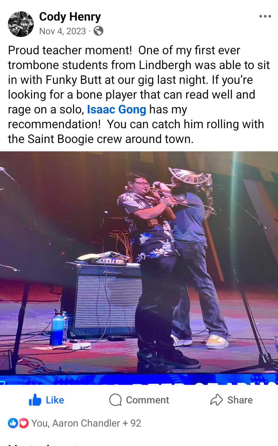 My name is Isaac. I am bilingual in English and Chinese. I grew up in an immigrant family, moved to the U.S. when I was 10 years old, and fell in love with band. I was in the Missouri all State Band all 4 years of my high school band run. I did marching band, state level solo small ensemble, all sorts of band trips and competitions. I have a bachelor's degree in Jazz Studies from The University of North Texas. I studied under trombone professors Nick Finzer and Tony Baker. I gig all around St. Louis with the St. Boogie Brass Band, a St. Louis take on the New Orleans style funk and brass band culture. I also play in a band named the Boogaloo Crew, led by Trumpet player Dawn Weber! I also currently teach trombone lessons in Jazz St. Louis, teaching kids from their JAZZ U program. Here is a link to my full resume-
